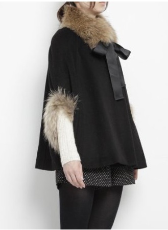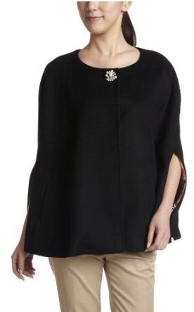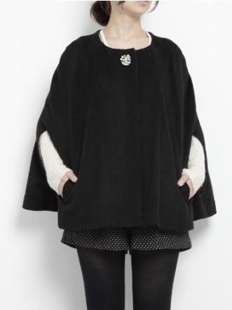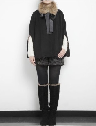 <色:ブラック>アースミュージックウールンポンチョ/コート